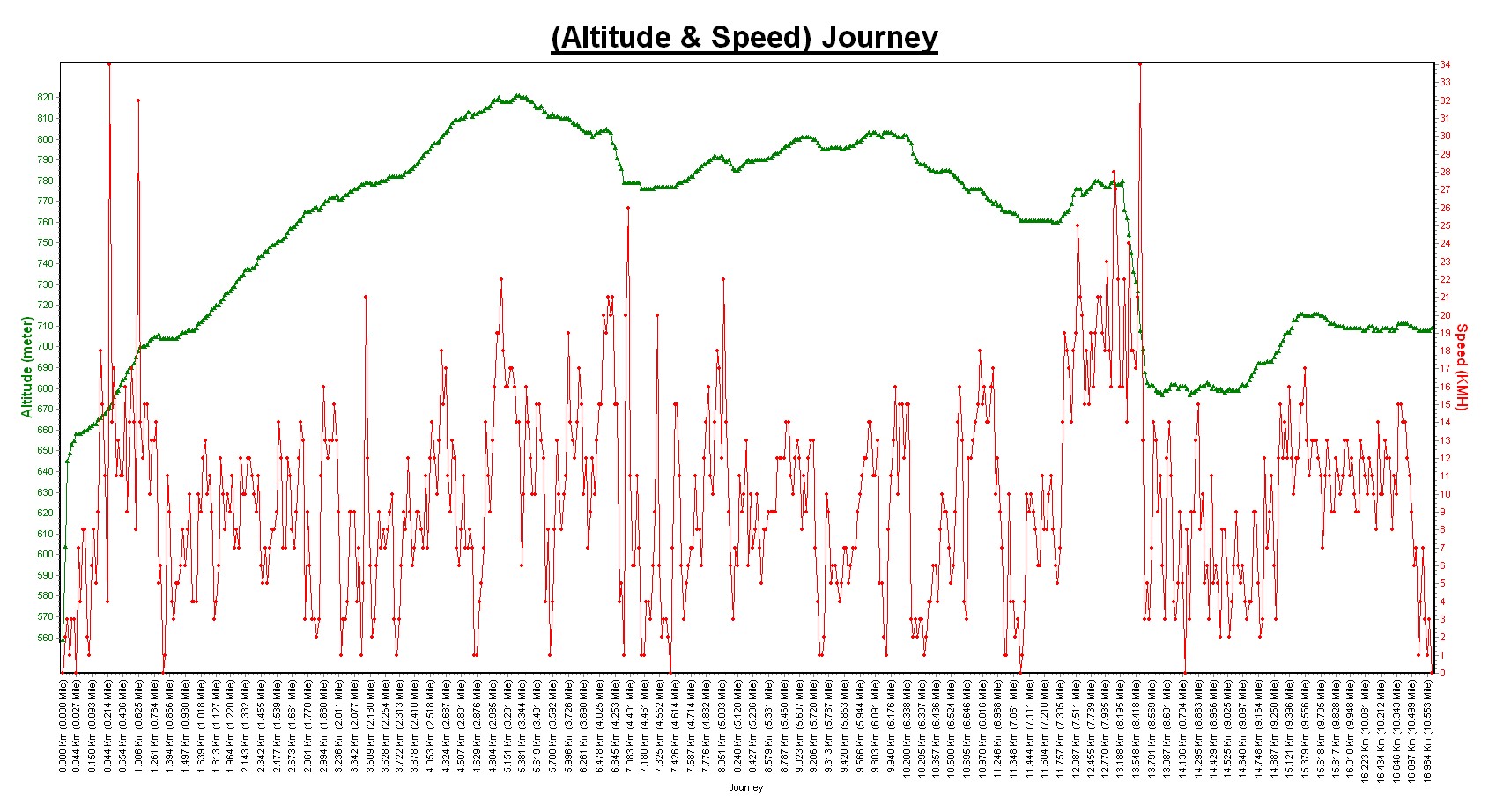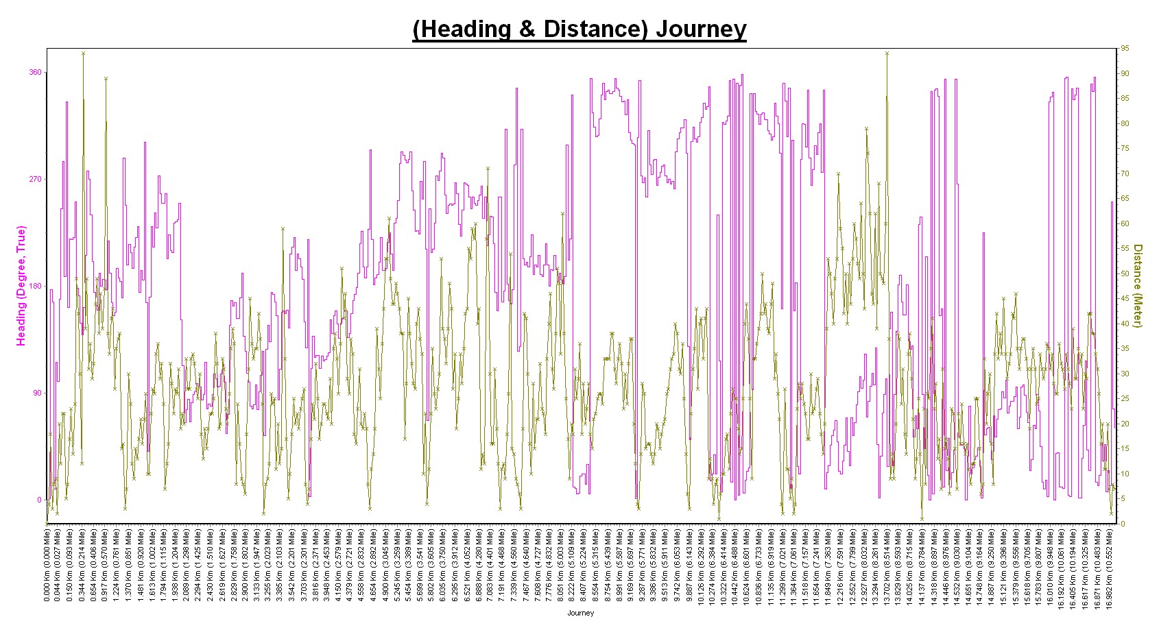 Distanz : 16.999 Km (10.563 Mile)